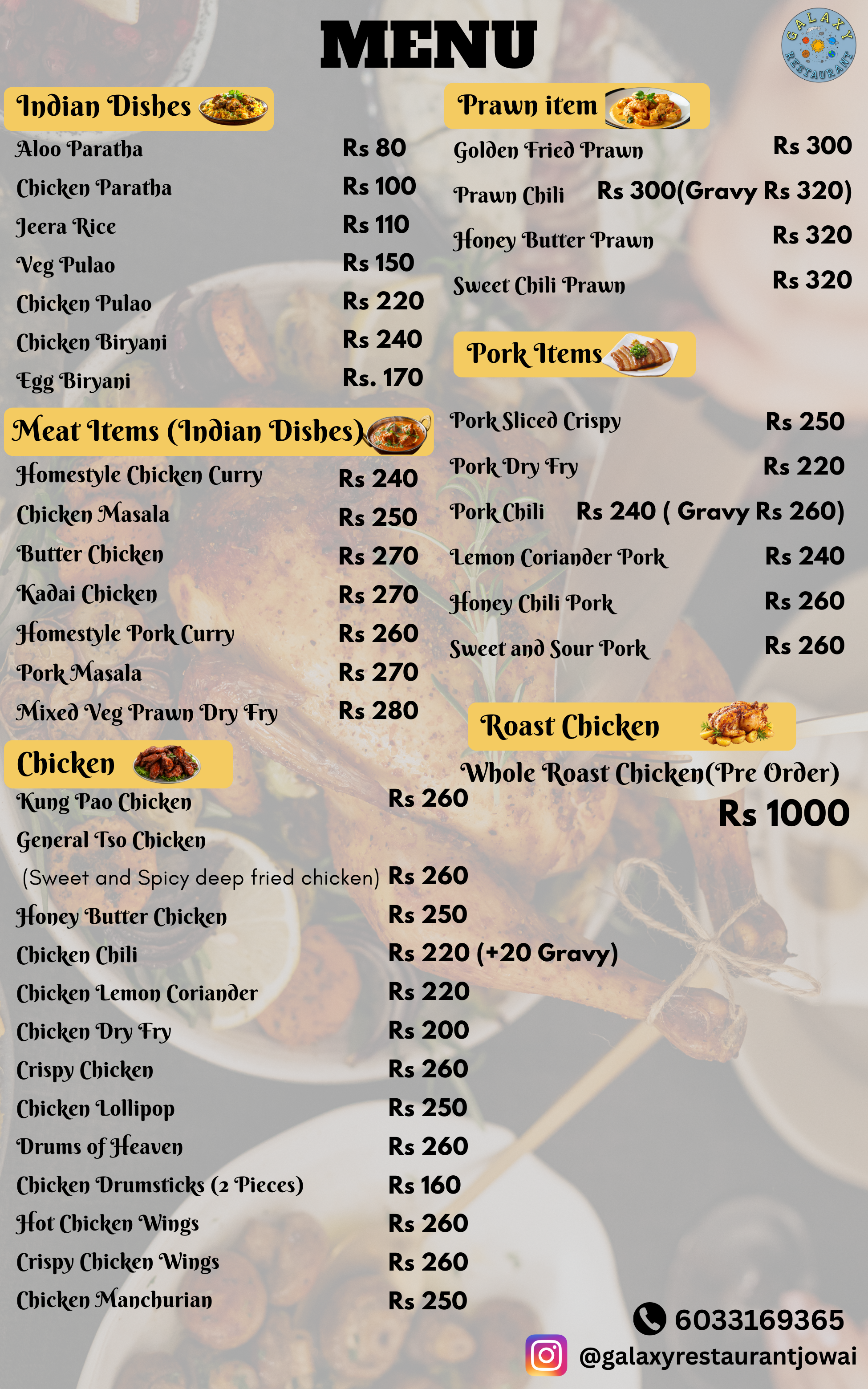 Indulge in a culinary journey like no other at our restaurant, where we celebrate the vibrant flavors of Chinese, Indian, and Italian cuisines. From the fiery spices of Szechuan to the aromatic curries of India, and the comforting pastas of Italy, our menu is a symphony of diverse tastes and textures.We invite you to savor the best of three worlds under one roof.